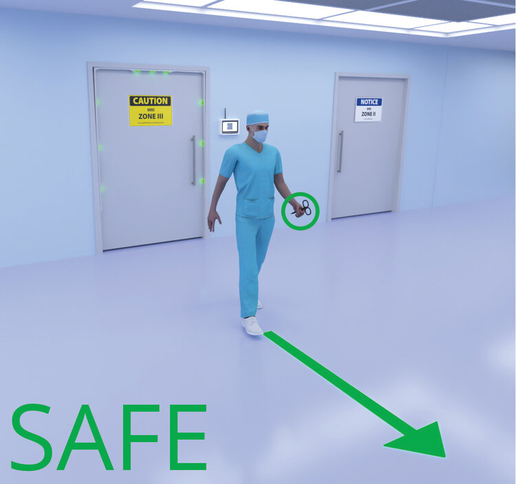 The Zone III magnetic signature changes as staff and equipment move around and Zone IV doors open, making it difficult for other FMDs to identify a threat. The IRadimed FMD1 continuously adapts to its ever changing environment by employing advanced, highly sensitive sensors allowing true magnetic threats to be detected. IRadimed’s patent pending Trusense technology predicts an approaching ferrous hazard by uniquely combining Time of Flight sensing of a threat’s speed, trajectory and Zone IV door status, with IRadimed’s expertise in Dynamic Signal Processing. This clever technology reduces false alarms, all while simultaneously circumventing background magnetic field noise, resulting in the True Sense of a True Hazard.